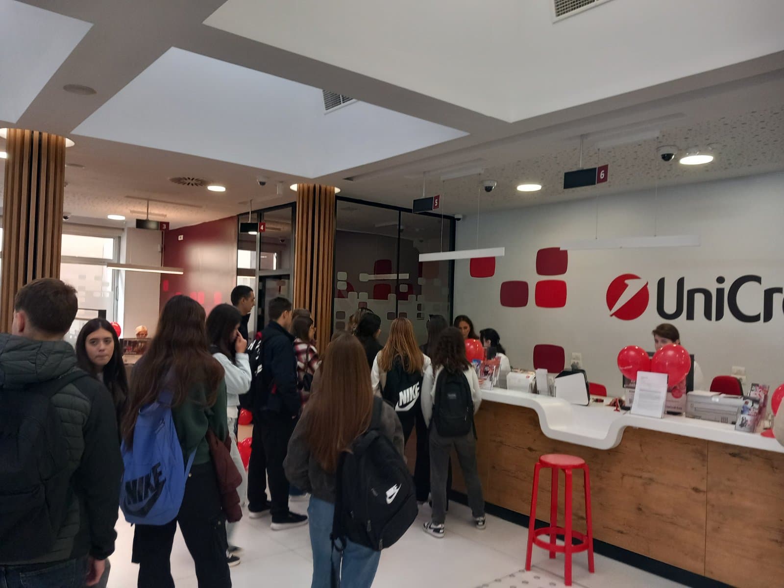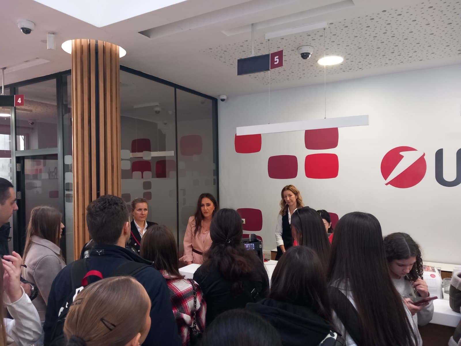 Tokom posjete, učenice i učenici su bili u prilici da se upoznaju sa svakodnevnim radom banke i poslovima koje obavljaju njeni uposlenici. Ljubazni domaćini iz UniCredit banke rado su odgovorili na sva učenička pitanja i podijelili svoja iskustva o radu u bankarskom sektoru.