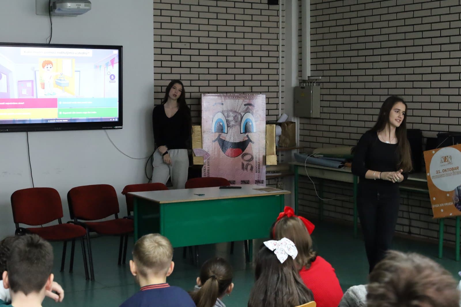 Sa učenicama i učenicima su realizovale kviz o vlastitim navikama štednje uz asocijacije na ovu temu.