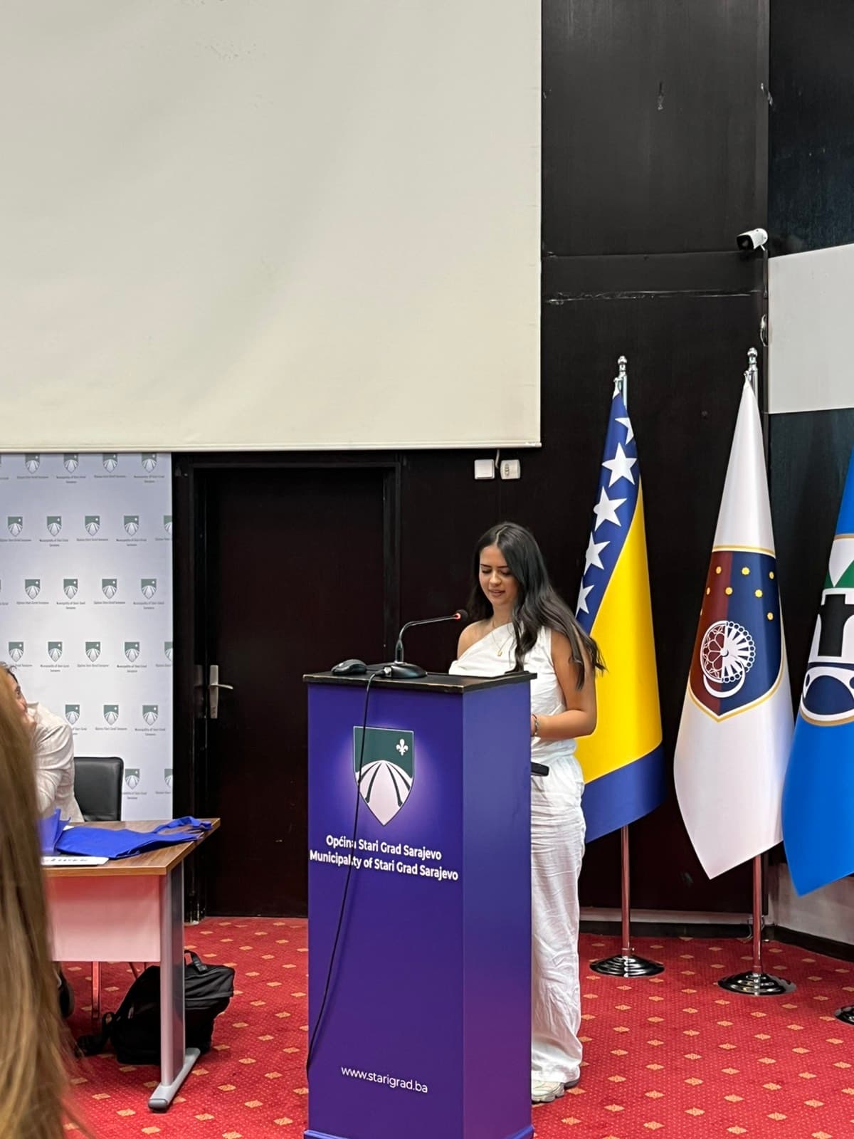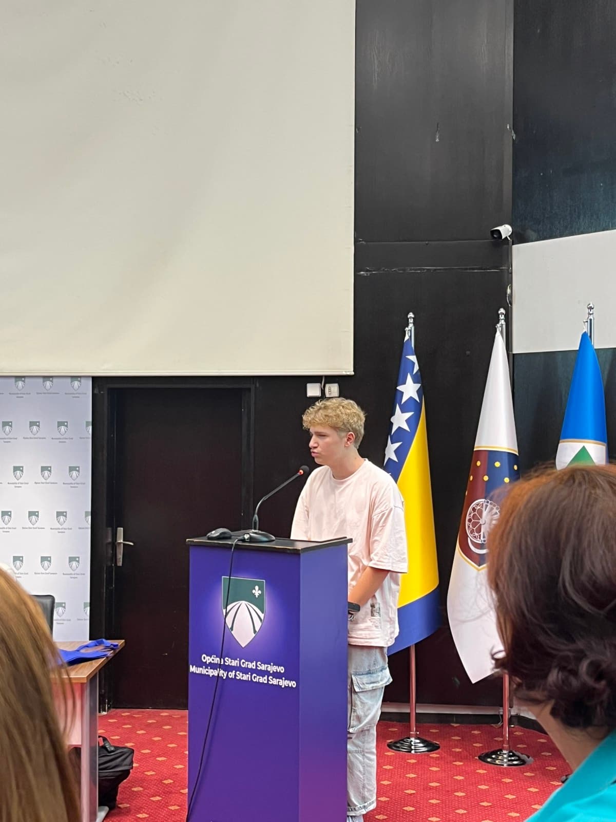 Obraćam se visokim zvaničnicima Skupštine, ima tu više govora, a moj sin sve prevodi u par rečenica i završava moj govor riječima: " i eto tako".... Razmišljam da mu priđem i zagrlim ga koliko je divan i odvažan.