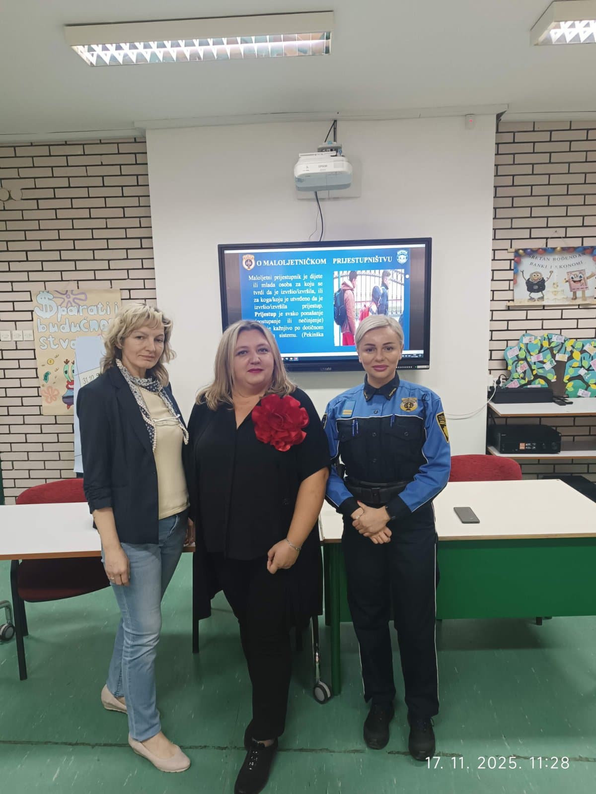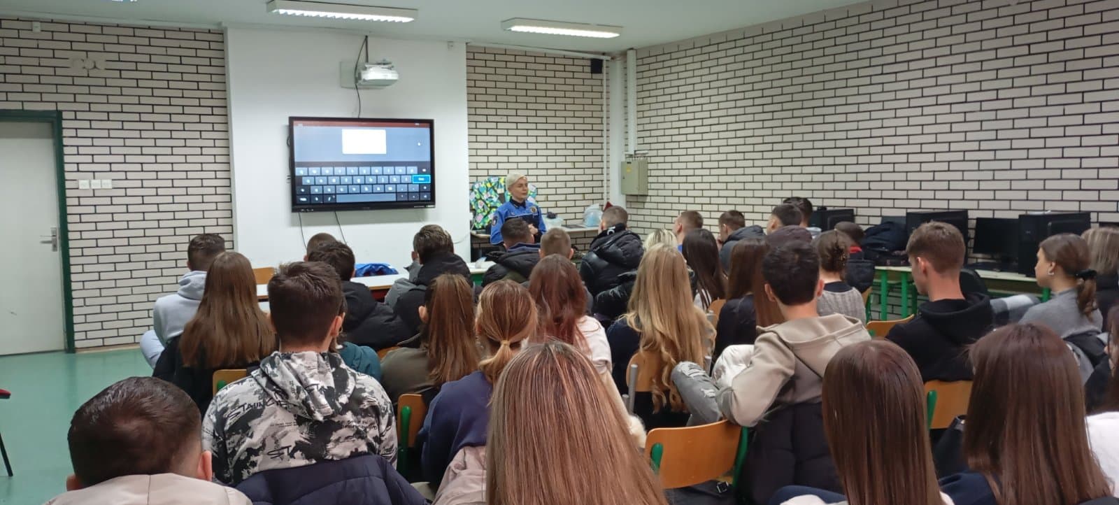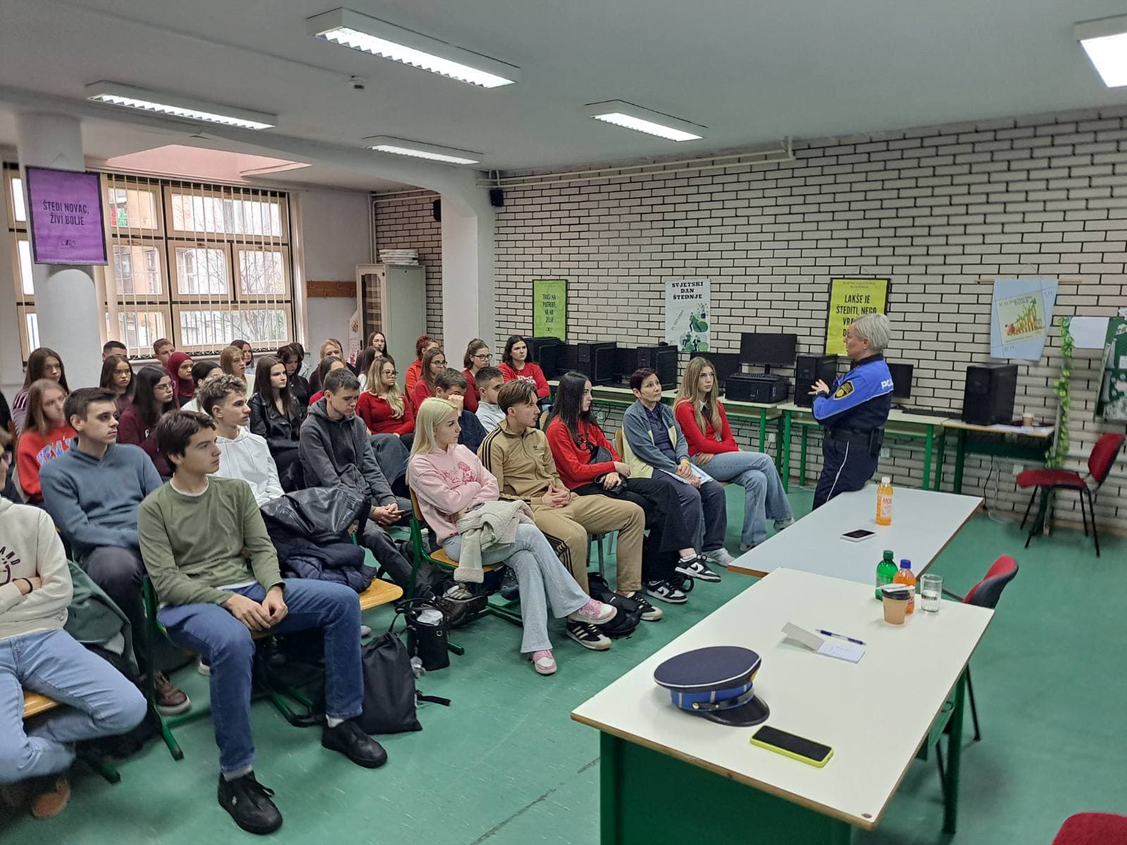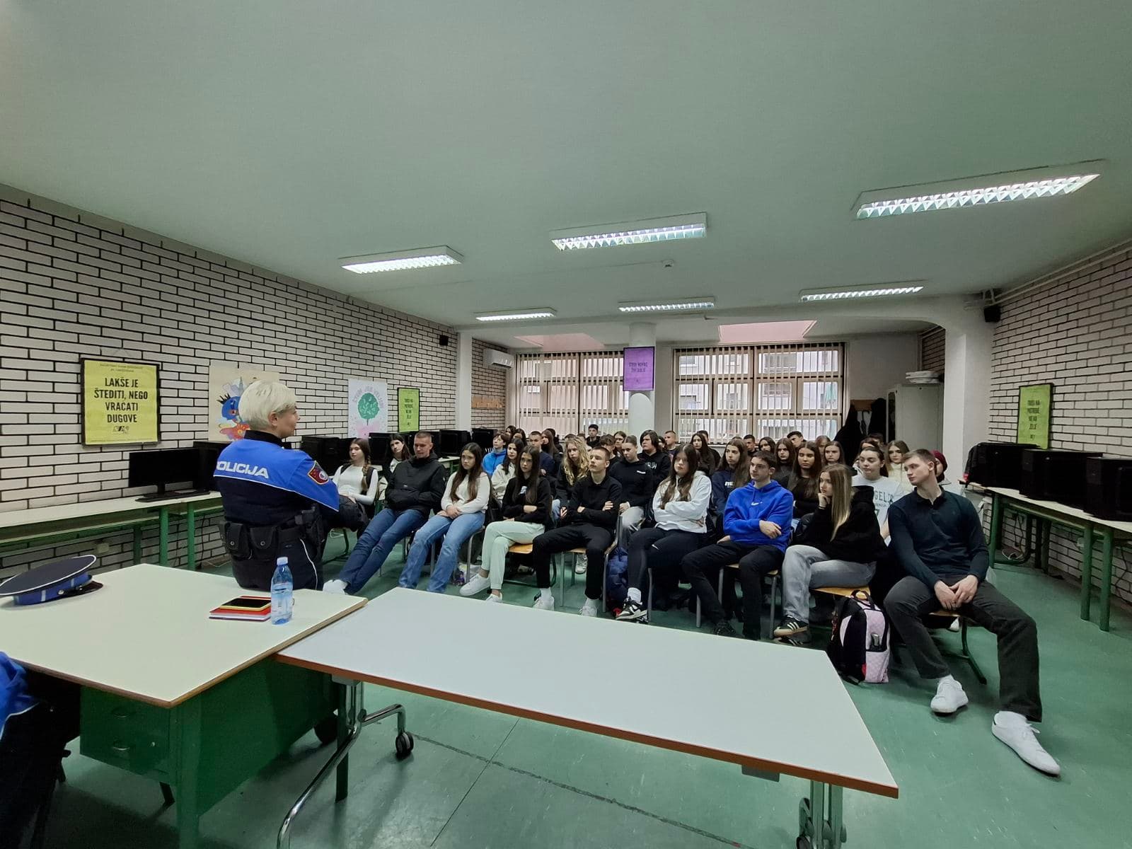 Za učenike prvih i drugih razreda održano je predavanje „Prevencija maloljetničkog prijestupništva – prava i obaveze učenika“, dok su učenici četvrtih razreda učestvovali u predavanju na temu „Trgovina ljudima“.