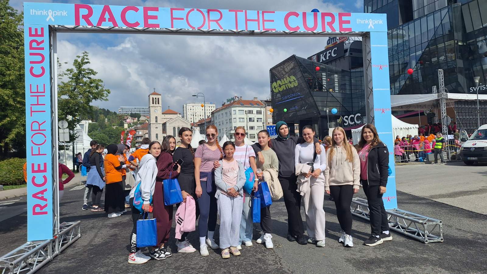 U ovoj plemenitoj misiji učestvovale su i učenice Srednje ekonomske škole, Sarajevo, zajedno sa pomoćnicom direktorice Edinom Kopić i profesoricom Lamijom Šabanović, dajući svoj doprinos borbi protiv karcinoma dojke.