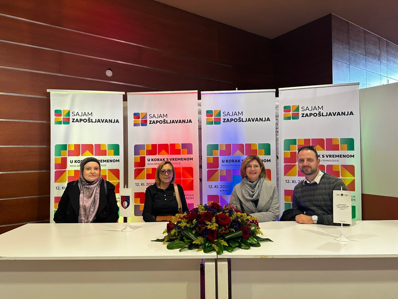Danas smo zakoračili u prostor gdje se susreću znanje, prilike i hrabrost da se napravi prvi profesionalni korak. U Skenderiji, na Sajmu zapošljavanja 2025, naši učenici/e su bili/e u prilici upoznati savremene trendove tržišta rada, razgovarati sa poslodavcima i otkriti nove profesionalne mogućnosti. Učenici/e su informisani o aktuelnim ponudama poslodavaca, zanimanjima koja su tražena. Na Sajmu su se predstavili poslodavci koji nude radna mjesta, a nezaposleni, učenici/e, studenti/ce su ostvarili kontakte sa poslodavcima, kroz razgovore, panel diskusije i debate. Na Sajmu su održane i dvije panel diskusije: