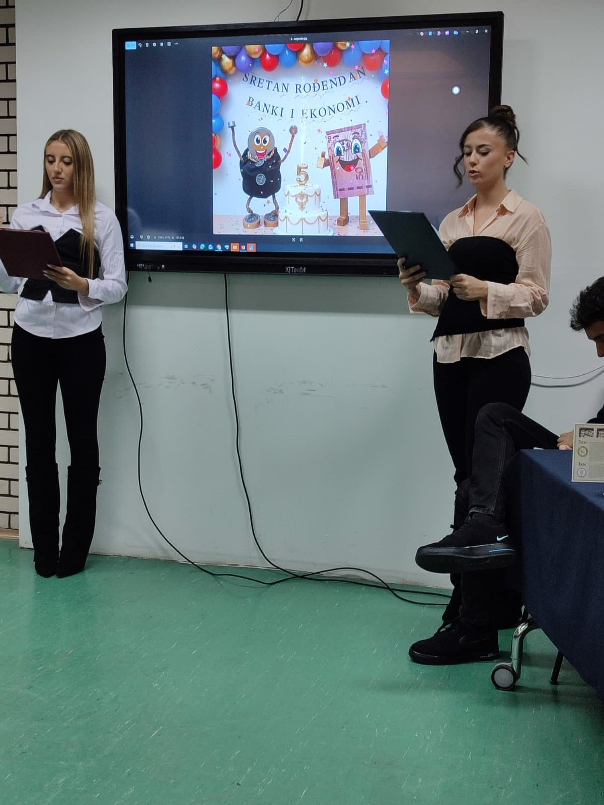 Pored edukativnog i zabavnog dijela programa, obilježen je i peti rođendan školskih maskota – Ekonomija i Bankija, koji su svojim prepoznatljivim izgledom i vedrim duhom dodatno uljepšali događaj i doprinijeli prijatnoj atmosferi.