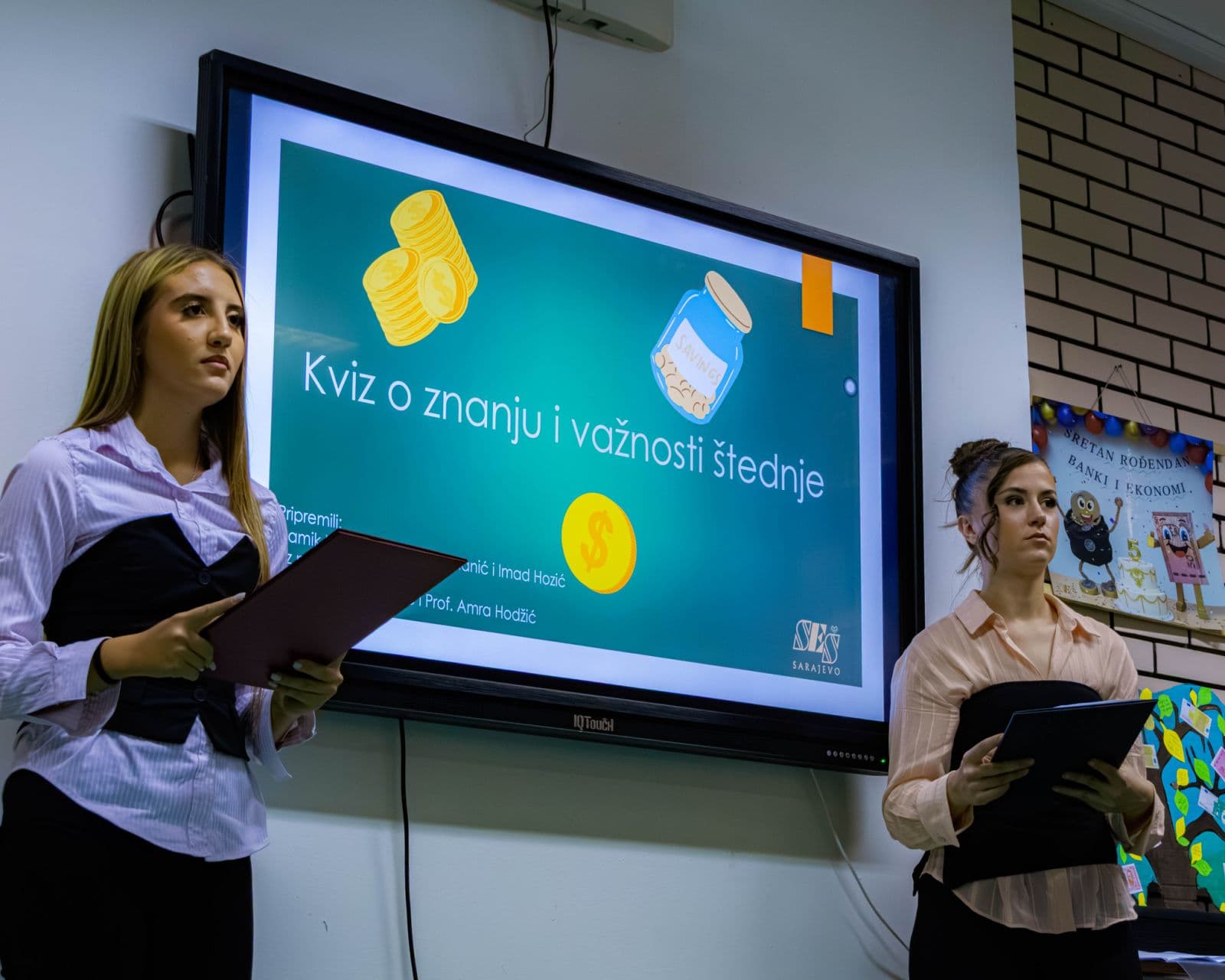 Maturantice smjera Bankarski tehničar su, u okviru obilježavanja Svjetskog dana štednje, uz mentorstvo profesorice Lejle Hujdur, realizovale časove učenicama i učenicima II razreda o koristima i značaju štednje.